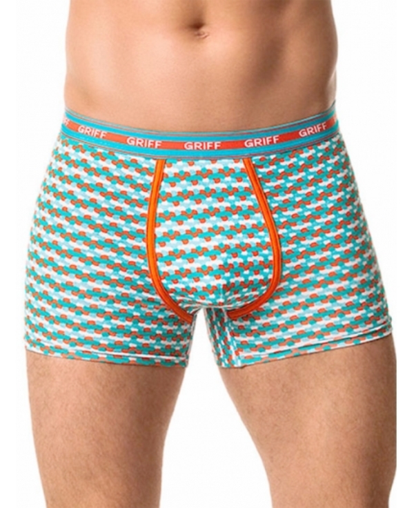Мужские трусы-боксеры. Выполнены из высококачественного эластичного хлопкового трикотажного полотна. Мягкая резинка и плоские швы делают данную модель максимально удобной. Пояс с фирменным логотипом Griff.