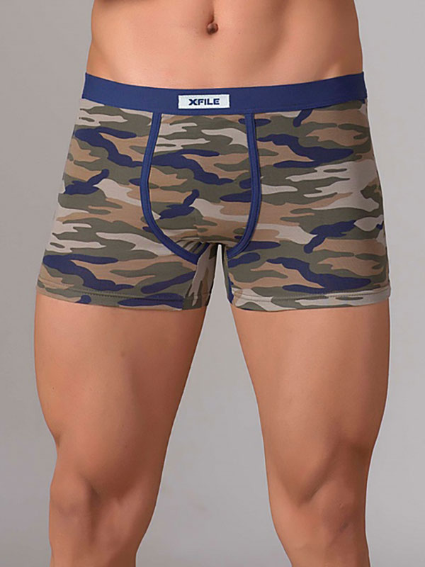Мужские трусы-боксеры из хлопка с пришивным эластичным поясом для стильных современных мужчин, следящих за модными тенденциями. Дизайн в стиле "милитари" всегда актуален.
