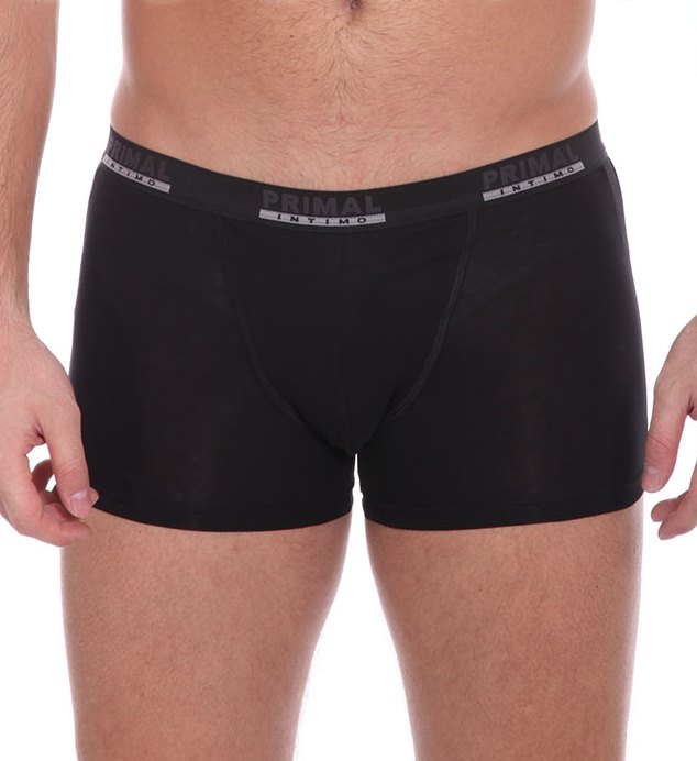 Мужские облегающие трусы-боксеры из хлопка с эластаном, пояс на плотной широкой резинке с тканой надписью "Primal Underwear" по кругу, бесшовная задняя часть.