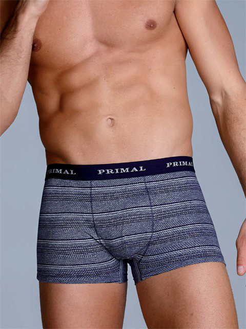 Мужские трусы-боксеры из хлопка с эластаном, на поясе широкая резинка с круговой надписью "Primal".