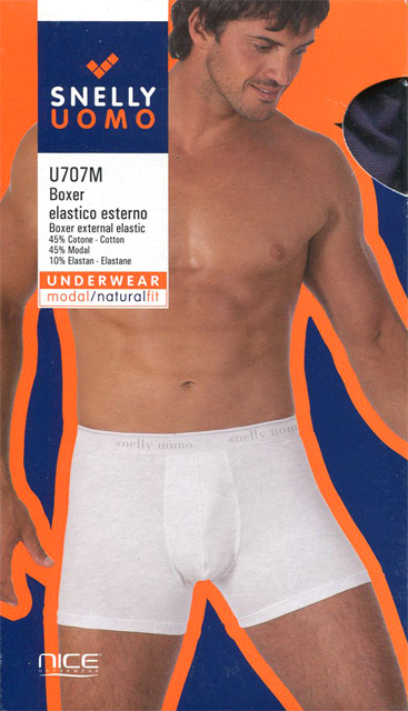 Мужские трусы-боксеры из хлопка с модалом, на поясе широкая резинка с круговой надписью "Snelly Uomo".