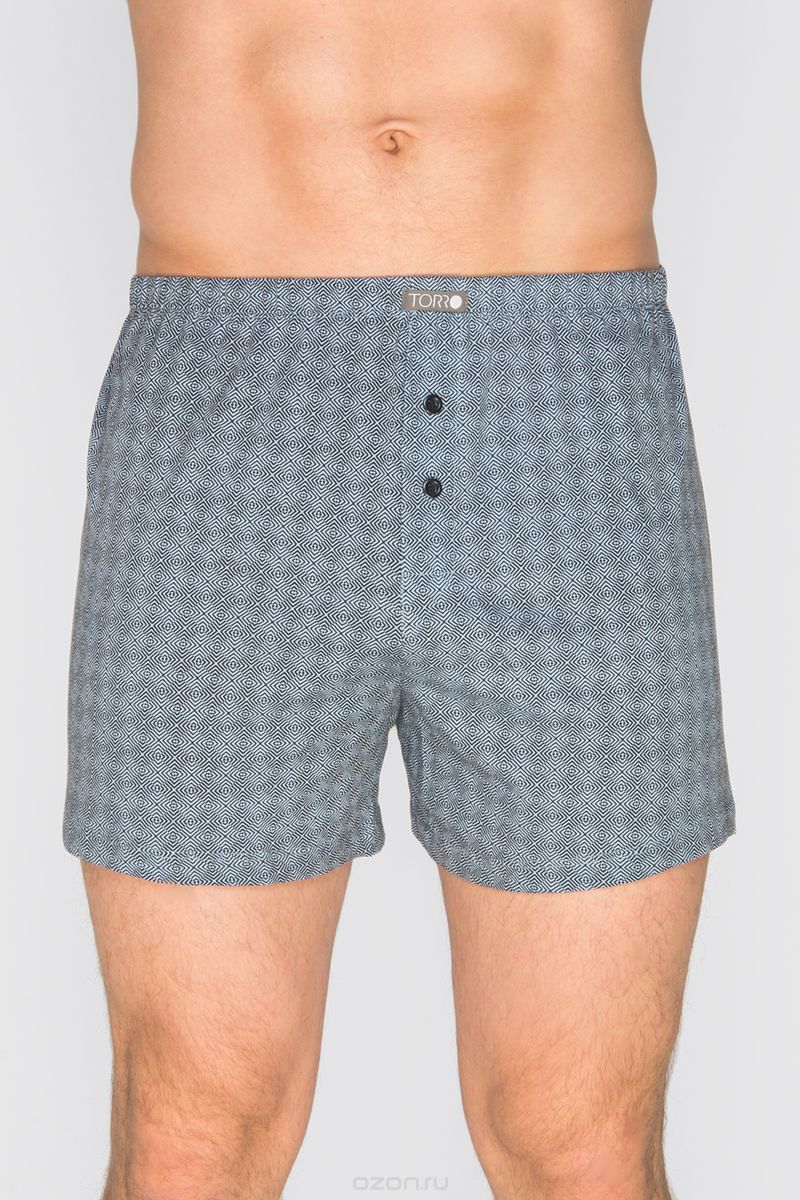 Трусы-боксеры Torro свободного кроя с геометричным принтом. Модель на цельнокроенном поясе с резинкой внутри. Гульфик дополнен пуговицами.
