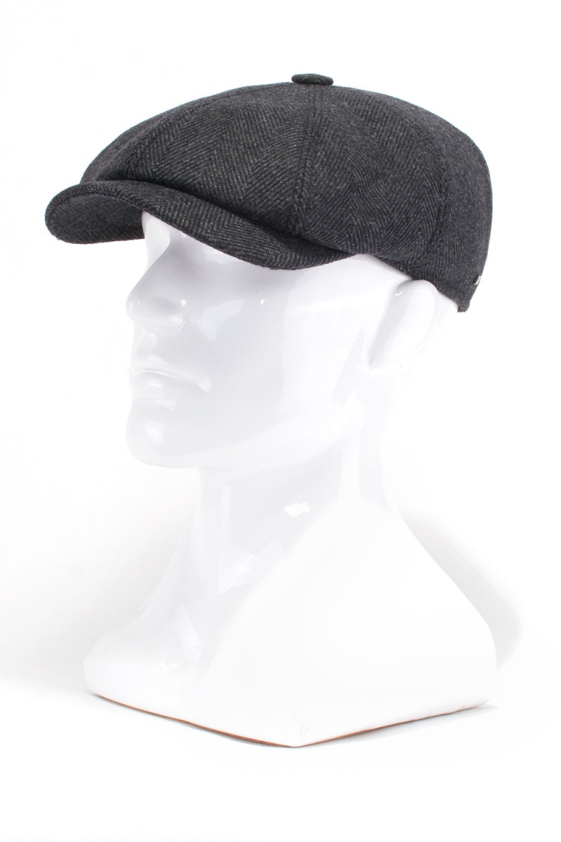 Кепка с удлиненным козырьком выполнена из пальтовой ткани черного цвета. Подкладка из вискозы с тонким синтепоном. Внутри кепки имеются шнурок-утяжка для регулировки размера и ушки для холодной погоды.