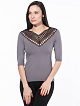 Элегантная блузка с рукавами 3/4 и V-образным воротом. Зона декольте модели декорирована объемной гипюровой вставкой.