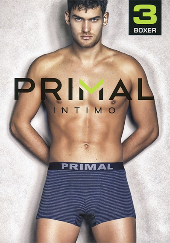Мужские трусы-боксеры из хлопка с эластаном, на поясе широкая резинка с круговой надписью "Primal",