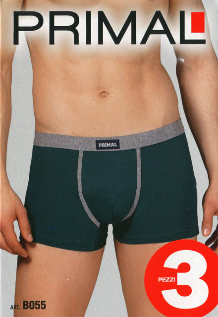 Мужские трусы-боксеры из хлопка с эластаном, однотонные, на широкой резинке c надписью "Primal", бесшовная задняя часть, ширинка отделана тесьмой. В упаковке 3 штуки разного цвета.