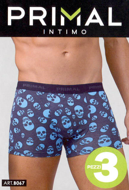 Мужские трусы-боксеры из хлопка с эластаном, на поясе широкая резинка с надписью "Primal", принт "черепа".