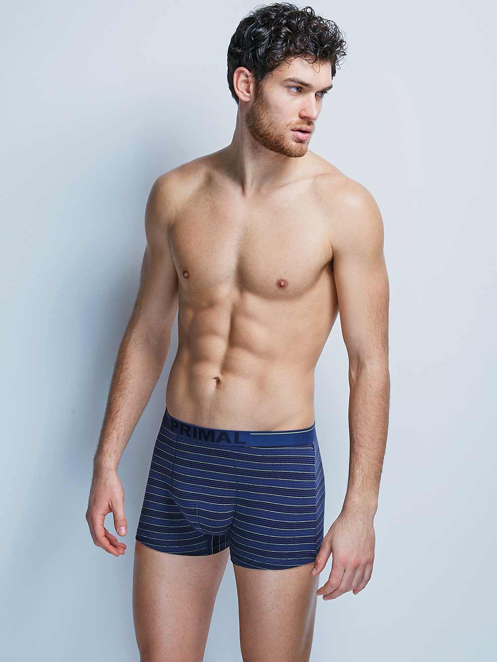 Мужские трусы-боксеры из хлопка с эластаном, на поясе широкая резинка с крупной фронтальной надписью "Primal".