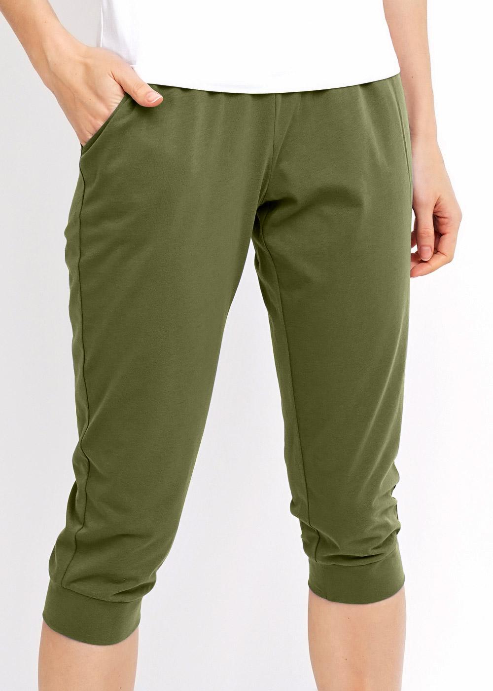 Бриджи с отрезным поясом и широкой резинкой на кулирке. Боковой карман в отрезном бочке. По низу манжет.