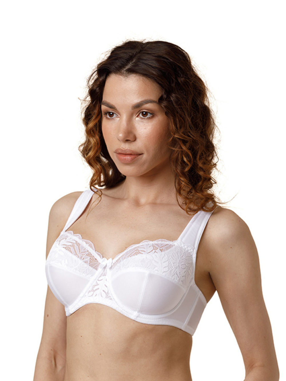 Бюстгальтер на каркасах с мягкой чашкой. Чашки имеют Т-образное членение, что позволяет придать груди правильную округлую форму. Усиленная бретель снимает нагрузку с плечевого пояса. Широкий стан с боковыми упругими пластинами плотно облегает тело и обеспечивает стабильную комфортную посадку бюстгальтера на фигуре.