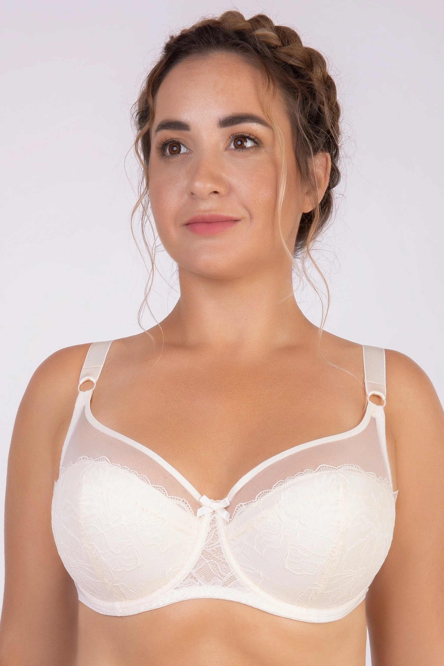 Классический бюстгальтер, выполненный из неэластичного кружевного полотна и эластичного трикотажного полотна. Модель на каркасах, нижние детали чашек на дубляже с тонким поролоном.
