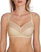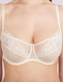 Мягкая чашка без каркасов. Ластовица, нижние детали чашки и боковая корректирующая деталь выполнены из неэластичного трикотажного полотна с ламинатом из хлопка для обеспечения комфорта и функциональности. Верхняя деталь чашки декорирована кружевом на эластичной упругой сетчатой подкладке, что визуально облегчает модель,сохраняя функциональность. Упругие пластины в боковых деталях стана для обеспечения фиксации на теле и наилучшей посадки. Боковые детали стана выполнены из эластичного трикотажного полотна.