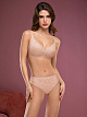 Бюстгальтер-балконет с формованной чашкой Valencia (небольшая градуация), цельнокроеный. Бесшовная модель, конструкция без косточек. Спинка "free cut". Регулируемые бретели. Застежка в два ряда на четыре позиции. Градация бретелей по размерам. Выполнен из двухслойной микрофибры фрикат (free cut), сетки, кружева с оригинальным орнаментом. Коллекция "Gala".