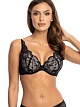 Бюстгальтер с формованными чашки из тонкого поролона. Пояс бюстгальтера из микрофибры с боковыми косточками. Кружево с чашки переходит на бретель — модный крой в дизайне белья.