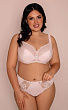 Мягкая чашка из неэластичного функционального трикотажного полотна, комбинированная эластичным кружевом. Бюстгальтер на каркасах, крой чашек и бретелей выполнен с учетом необходимости поддержки большой пышной груди, внутренняя подкладка чашек выполнена из хлопкового полотна.