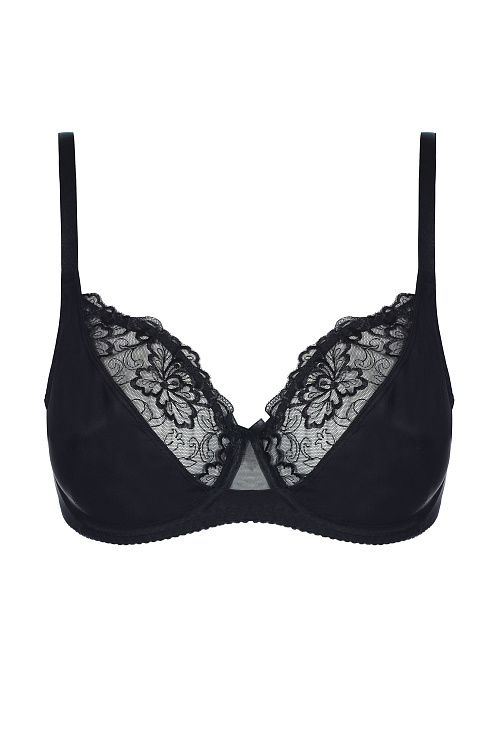 Бюстгальтер из эластичного трикотажного полотна и эластичного кружева. Мягкие чашки на каркасах с тройным диагональным членением, такая конструкция создает округлую форму груди. Маечный тип стана. Используется четырехрядная застежка, что позволяет идеально отрегулировать объем бюстгальтера. Ширина бретелей и застежки изменяется в зависимости от размера бюстгальтера.