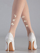 Тонкие свадебные чулки с лайкрой, формованные, на кружевной силиконовой резинке с цветочным узором шириной 10 см. Задняя часть голени модели украшена тремя бантиками с "жемчужинками".