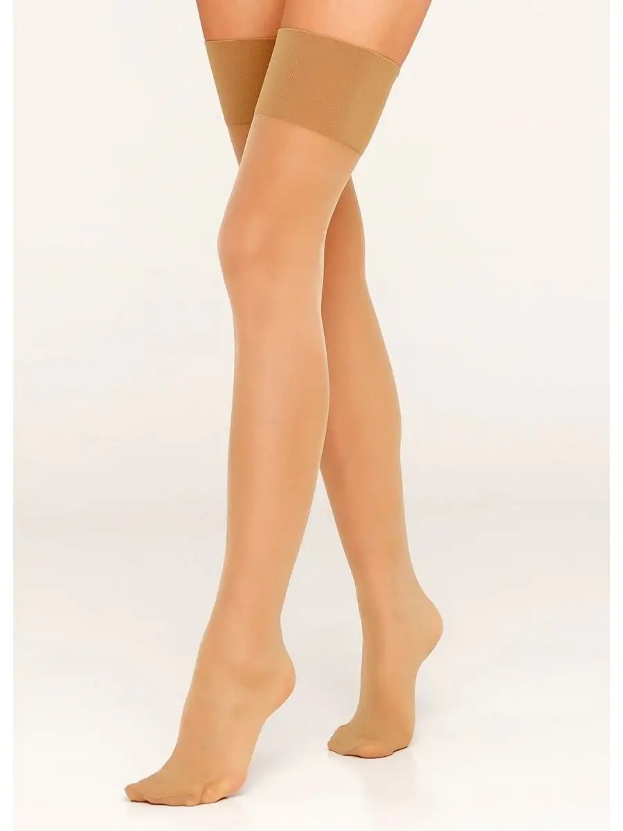 Тонкие шелковистые чулки плотностью 20 ден, под пояс, с элегантной минималистичной коронкой, которая легко впишется в любой стиль. Чулки хорошо сидят и красиво смотрятся на ножках. В верхней части изделие имеет широкую, уплотненную кайму для застежки. Нижняя часть дополнена формованной пяткой и полупрозрачным усиленным мыском. Пояс в комплект не входит.
