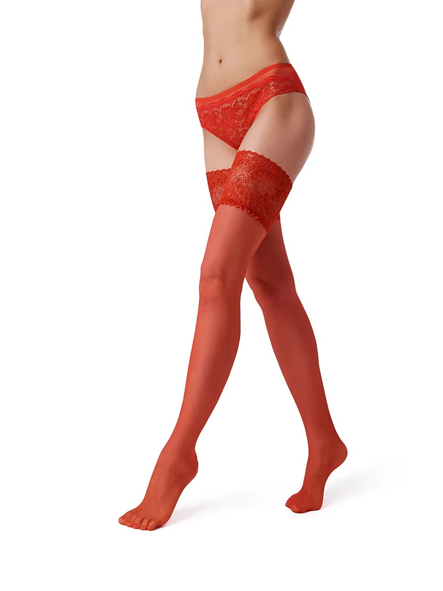 Женские тонкие, эластичные чулки 20 den. Широкая резинка (11 см) на силиконовой основе надежно фиксирует чулки на ноге, а оригинальное воздушное кружево с авторским рисунком и сияющим люрексом создает эффект «вуали» на обнаженной коже. В палитре представлено 5 оттенков, что позволяет гармонично дополнить практически любой наряд. Чулки TI AMO – это идеальное дополнение праздничного или свадебного образа.