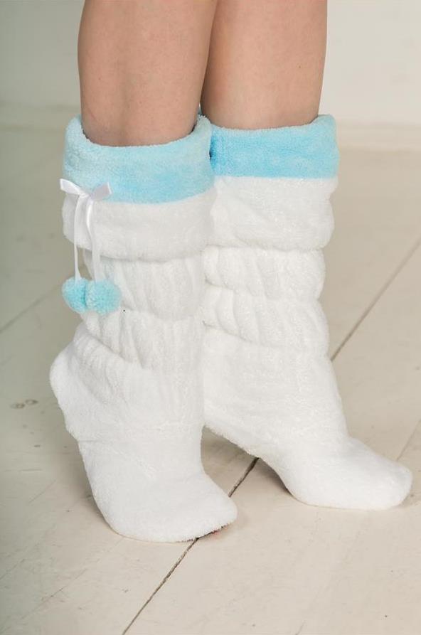 Тепло домашних сапожек бывает так уместно в прохладное время года. Классическое сочетание цветов, бумбоны в верхней части сапожек создают уникальный стиль.