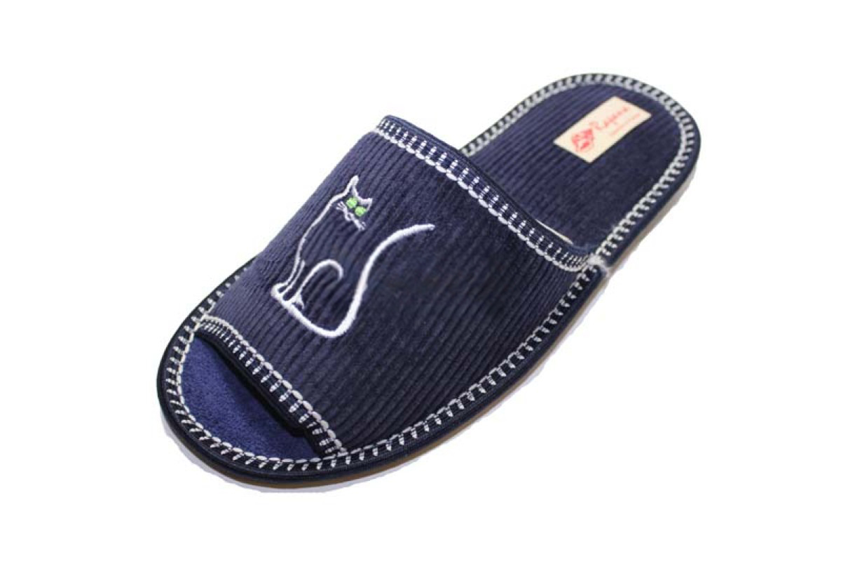 Обувь жен. вельвет синий, вышивка "Кошка" 513037