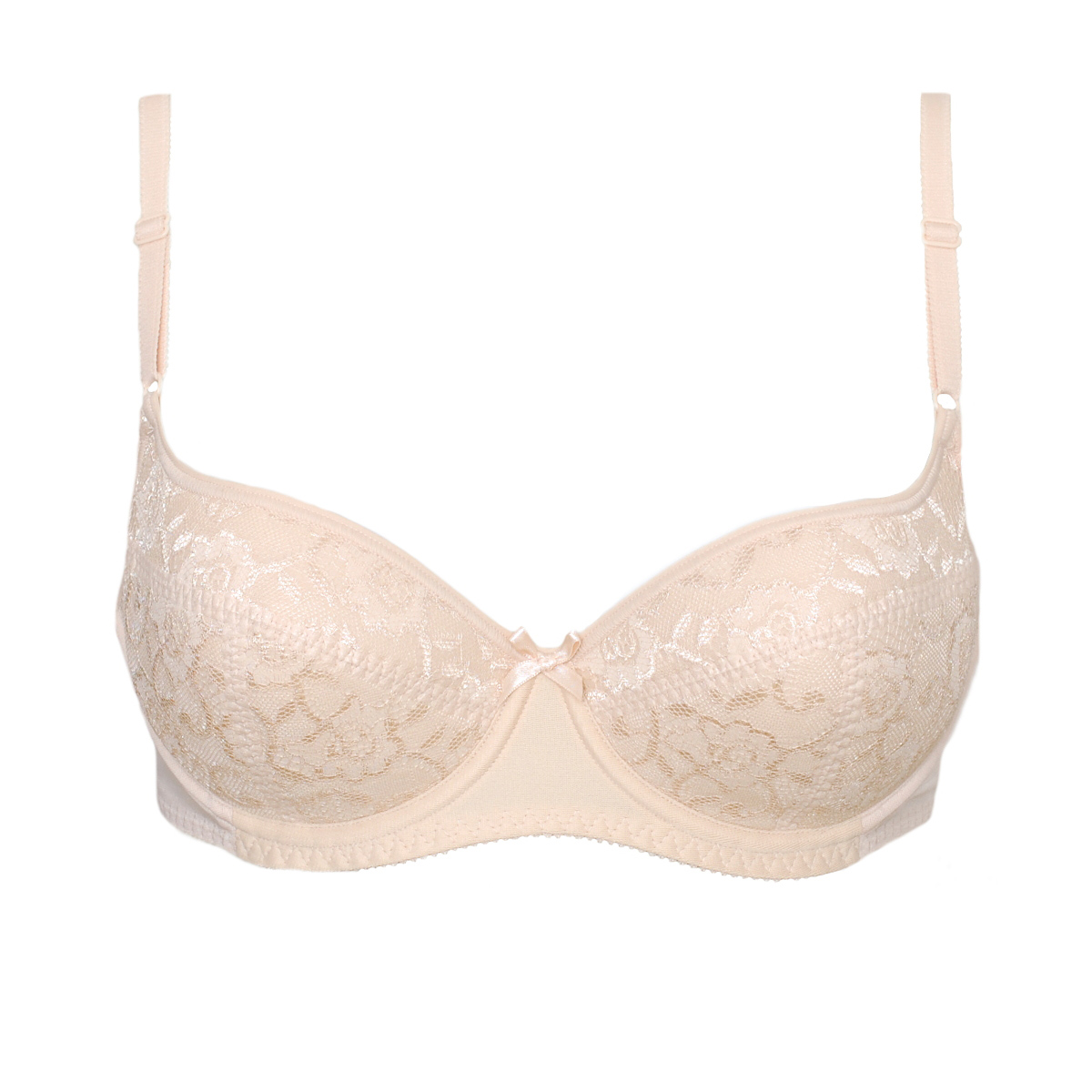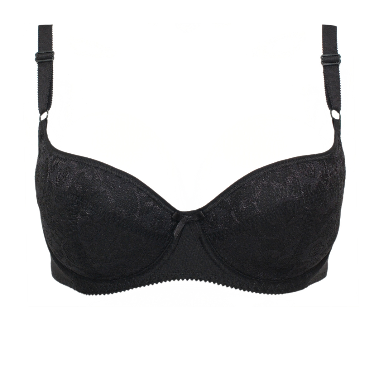 Бюстгальтер на каркасах из не эластичного кружева и эластичного трикотажного полотна. Чашки выполнены из 4-х слойного ламинированного полотна.