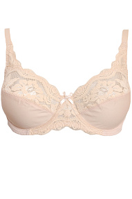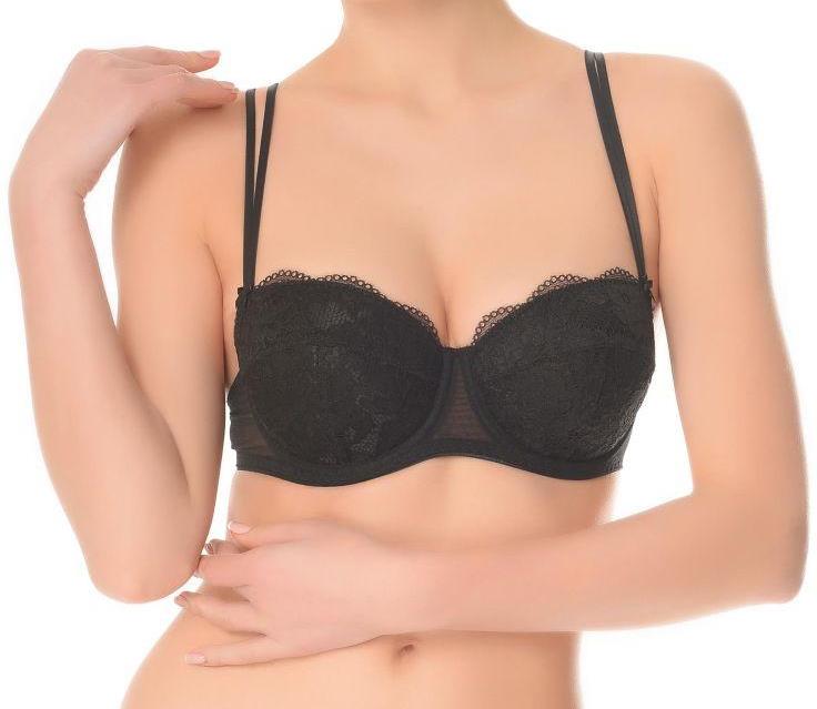 Бюстгальтер-балконет AVELINE 66083 с чашками "пуш-ап" на каркасах. Выполнен из эластичного кружева и эластичного сетчатого полотна. Чашки на дубляже с хлопком, с объемными вкладышами.