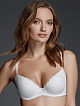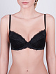 Бюстгальтер "балконет" с эффектом пуш-ап из эластичного трикотажного полотна и эластичного кружева, на каркасах. Жёсткие формованные чашки со встроенным пуш-апом. Упругие пластины в боковых деталях стана. Съемные бретели. Отделка - атласный бантик.