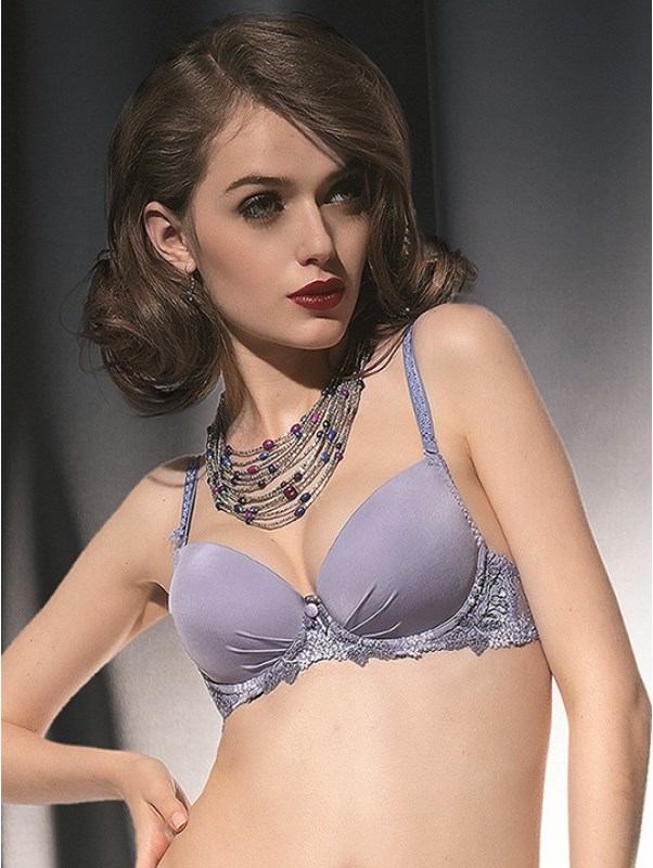 Бюстгальтер "балконет" с градуированной чашкой и с кружевной отделкой.