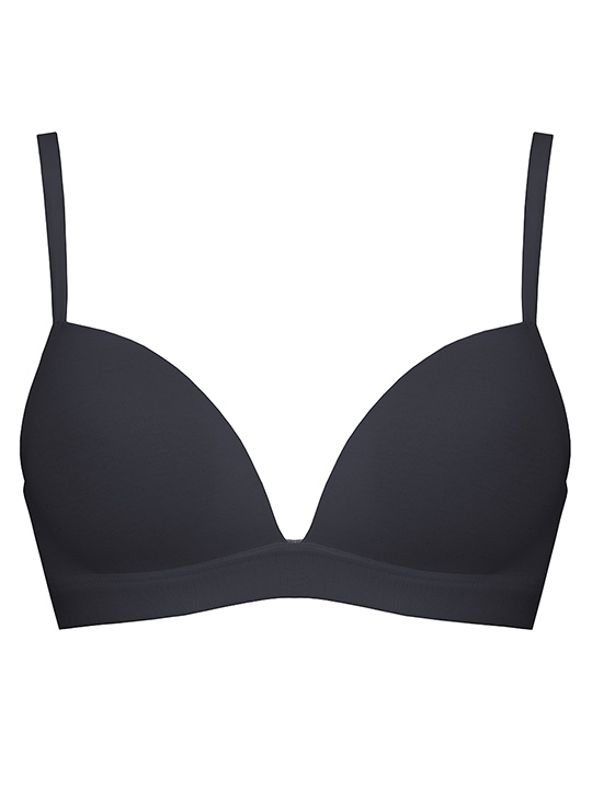 Бюстгальтер-триангул с формованной чашкой, без косточек. Боковые косточки для лучшей посадки. Чашки и спинка полностью дублированы органическим хлопком. Несъемная регулируемая бретель. Застежка на 2 крючка на 4 позиции.