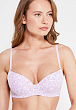 Бюстгальтер с плотными формованными чашками, выполнен из эластичного полотна с круженым декором,