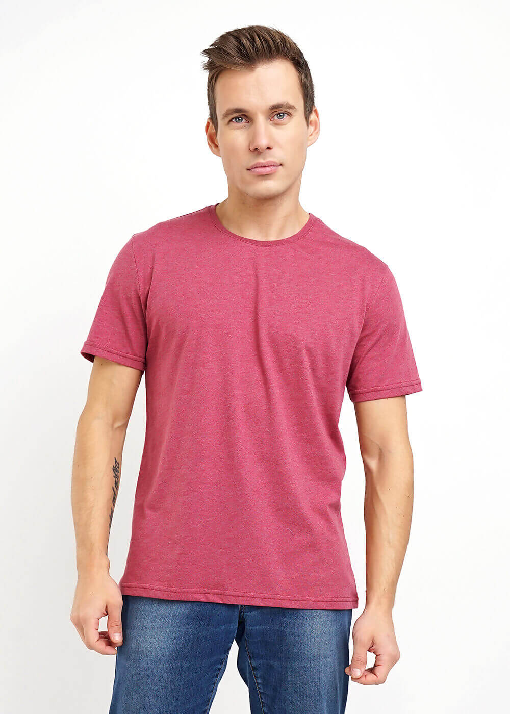 Базовая мужская футболка на каждый день с круглым вырезом. Хорошо смотрится в сочетании с любой одеждой. Модель выполнена из полотна с высоким содержанием хлопка. Модель исполнена в актуальных цветах и подойдет для повседневного ношения.
