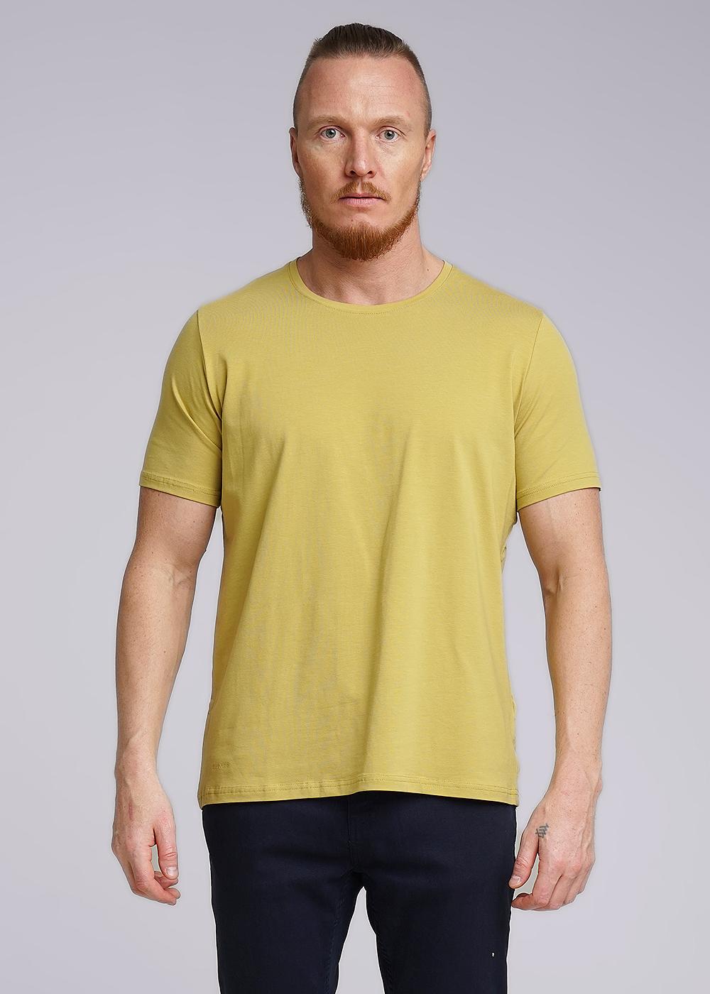 Стильная базовая футболка с круглым вырезом горловины из качественного меланжевого полотна с большим содержанием хлопка. Отличный вариант для повседневной носки в комплекте с брюками.