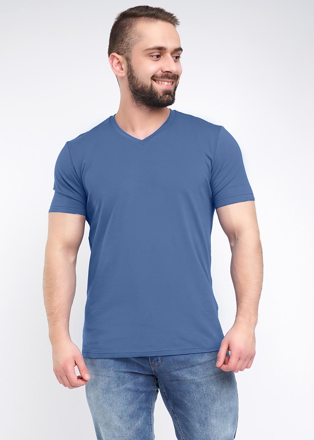 Фуфайка базовой посадки, v-образный вырез горловины, короткий рукав без манжет.