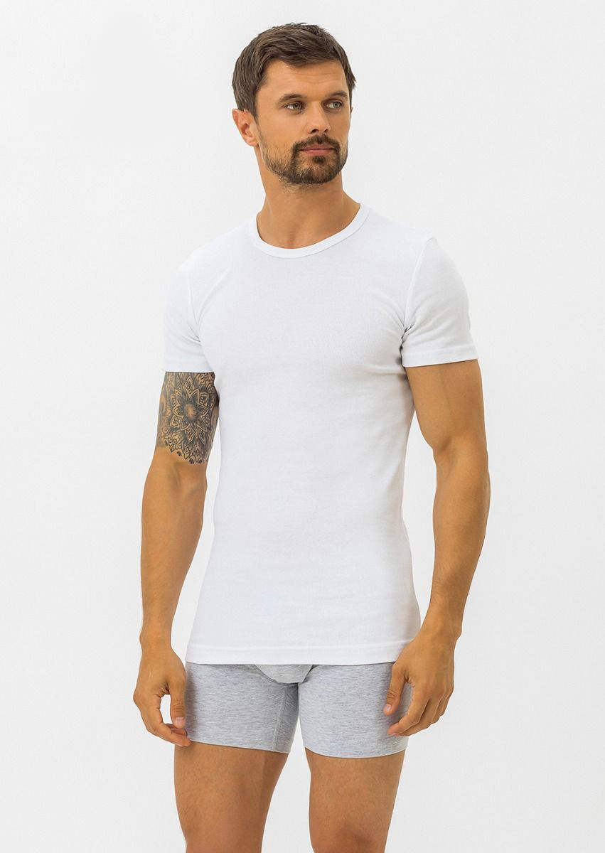 Мужская базовая футболка облегающего силуэта с коротким рукавом и круглым вырезом горловины, предназначенная для повседневной носки.
