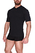 Футболка с V-образным вырезом горловины и коротким рукавом, выполненная из хлопкового полотна. Без боковых швов.