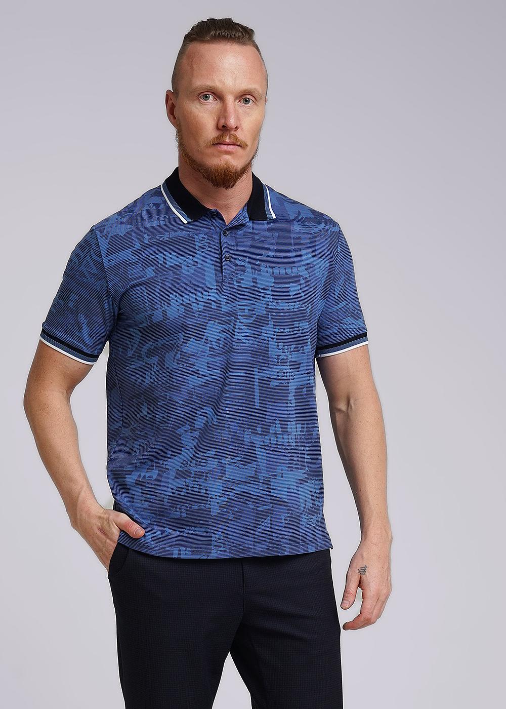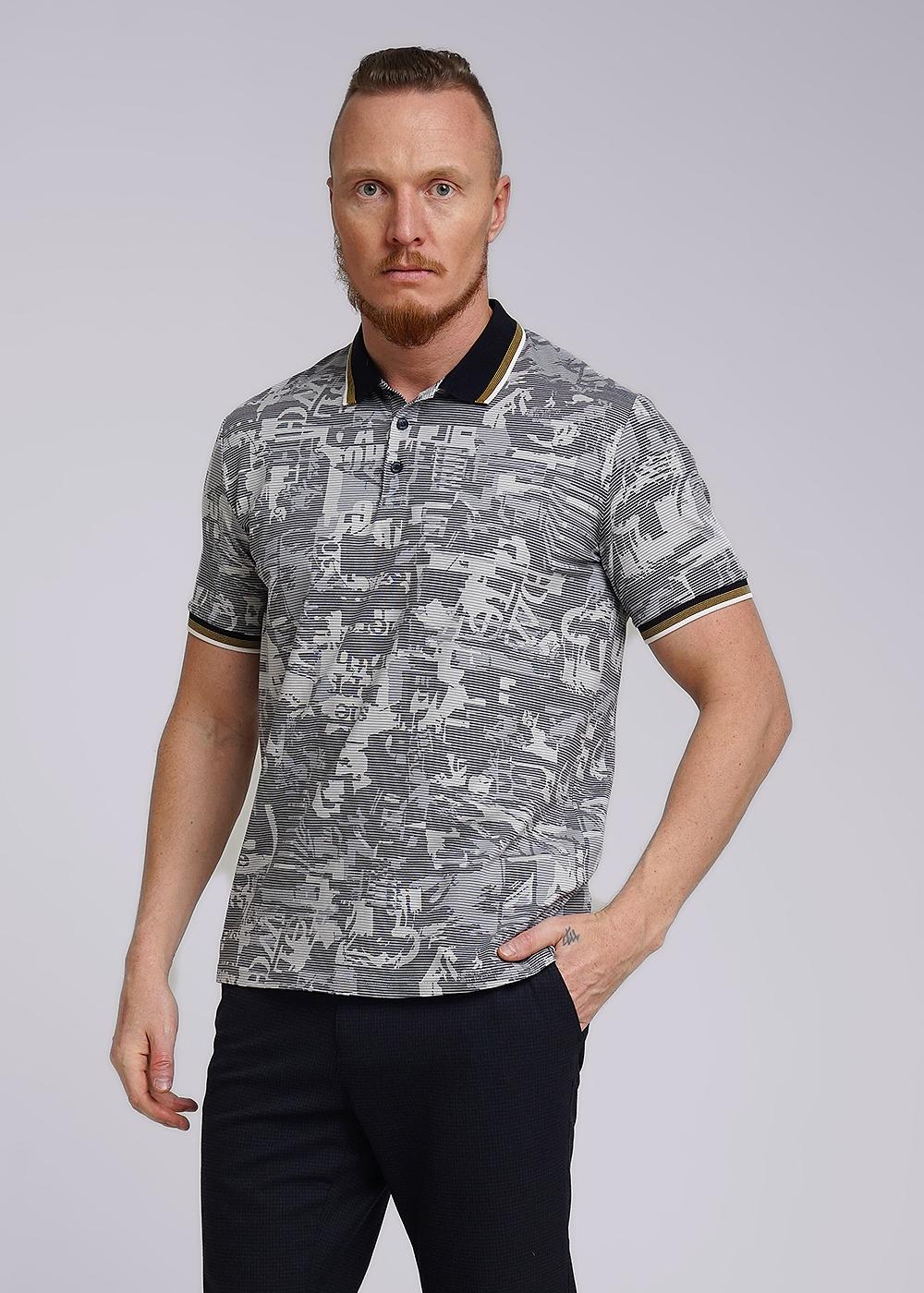 Футболка поло с абстрактной набивкой и вязаными отделками, прекрасное решение для похода на работу или прогулки с друзьями. Данная модель отлично впишется в любой гардероб и составит комплект с брюками или джинсами.