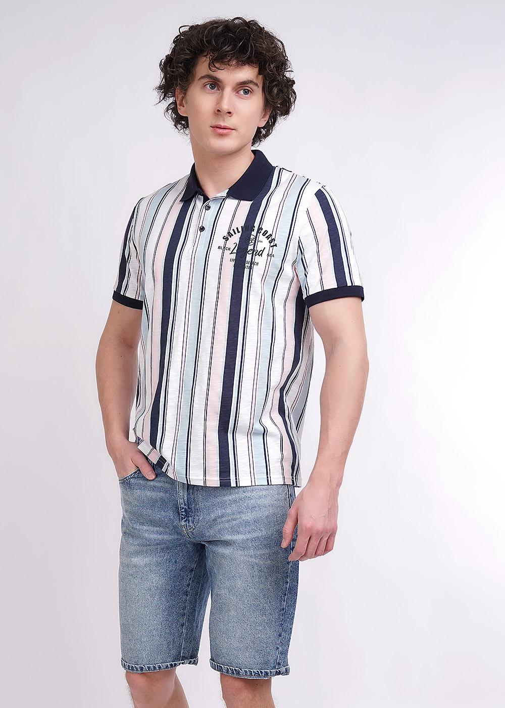 Футболка-поло с отложным воротником и функциональной планкой на пуговицах из 100% хлопка (флам) в стильную цветную полоску. Изделие выгодно подчеркивают принт в области груди, а так же фирменная нашивка. Можно сочетать с пиджаком и брюками-чинос.