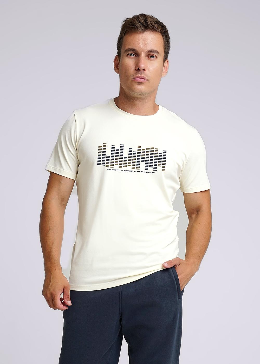 Футболка мужская из хлопкового полотна с эластаном. Оригинальность изделию придает динамичный принт. Отличный вариант для прогулок и встреч с друзьями.