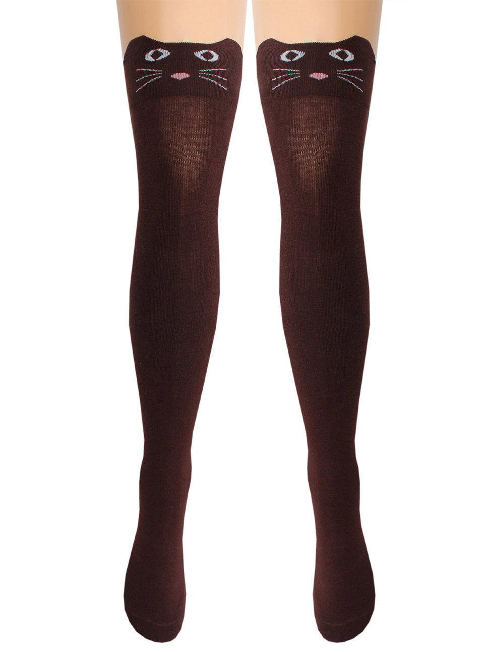 Хлопковые женские гольфины с комфортной широкой резинкой "в рубчик" и фигурным верхом, имитирующим мордочку кошечки.