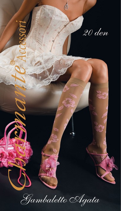 Великолепные фантазийные гольфы с эффектным рисунком в крупный цветок из контрастных нитей.