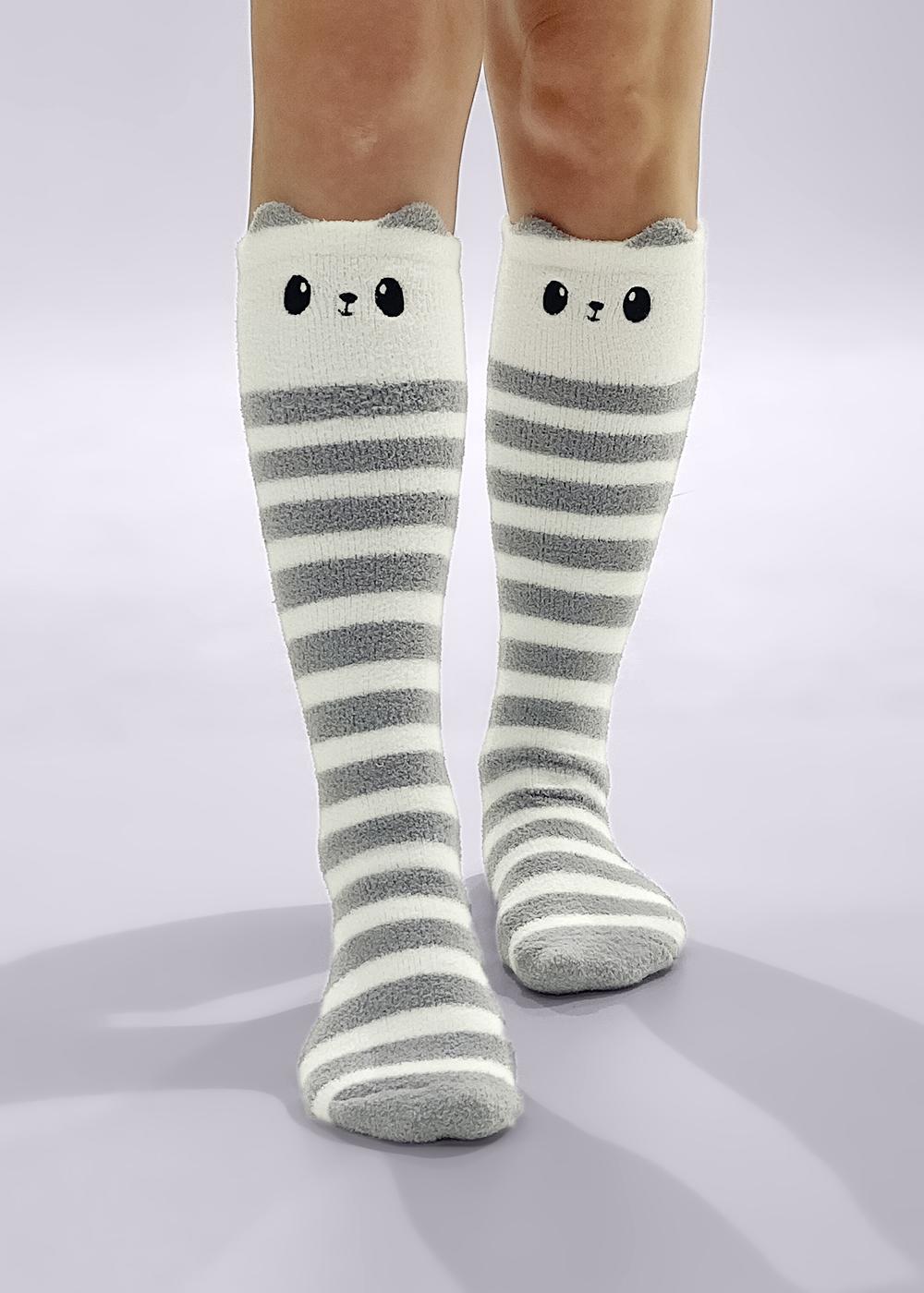 мягкие уютные гольфы из травки с вышивкой мордочки и ушками 3Д