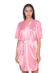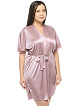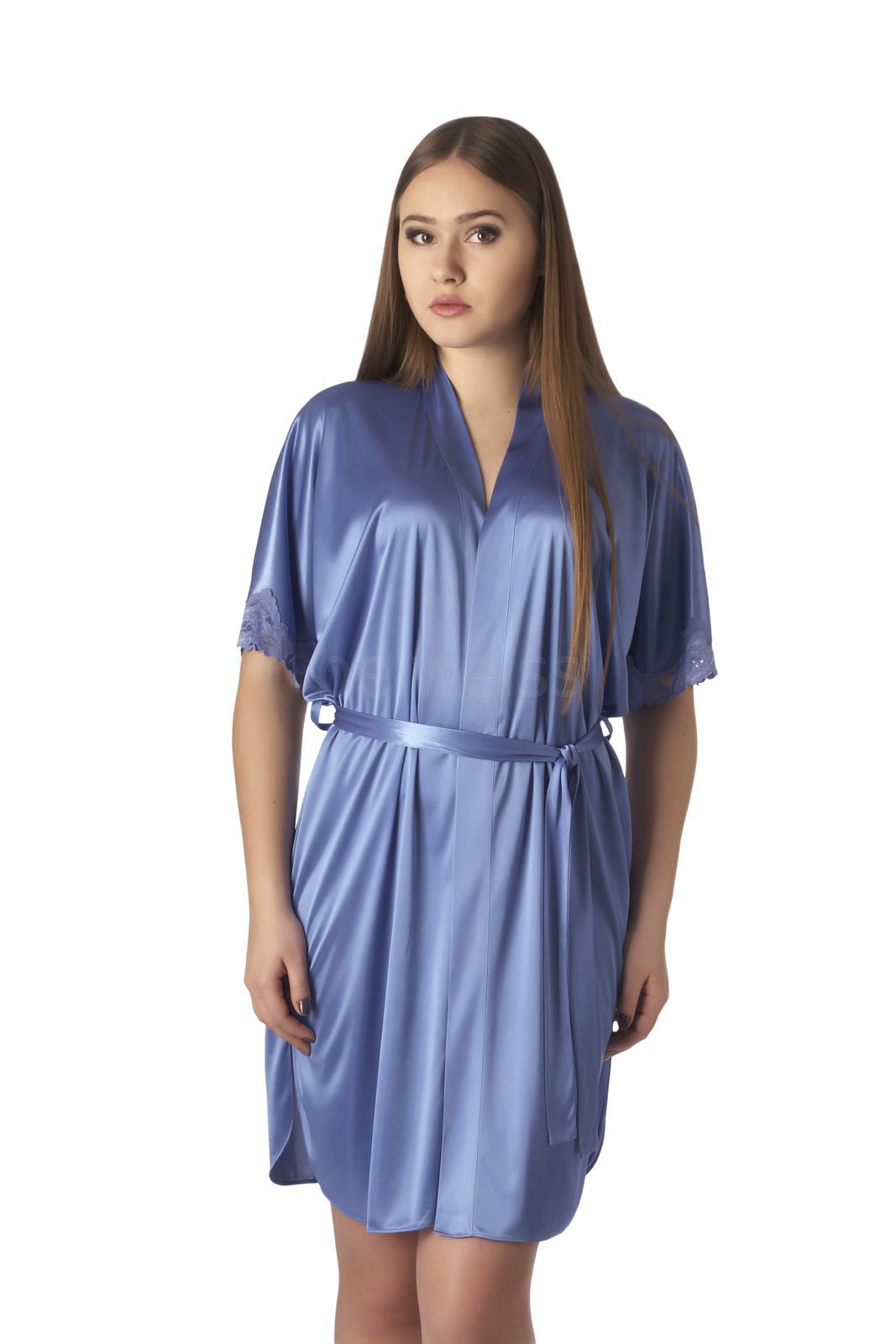 Короткий халатик из шелковистого трикотажного однотонного полотна; прямого силуэта, свободного покроя, с запахом под пояс. Цельнокроенный короткий рукав по низу декорирован фигурным эластичным кружевом в тон. По бокам закруглённые разрезы.