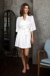 Халат домашний Миа-Миа прямого силуэта выполнен из шелка. Халат средней длины на поясе с втачным рукавом. Модель по борту на обтачке, по талии завязывается на внутреннюю завязку. Интересный узор шелка придает модели женственность. Состав: 100% шелк.