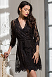 Короткий халат–кимоно выполнен из кружевного полотна. Низ и борта декорированы фигурным кружевом.