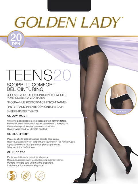 Женские колготки Golden Lady Teens 20 VB (Голден Леди Тинс 20 вб) тонкие, на низкой талии, эластичные с поддерживающей верхней частью в виде бикини.