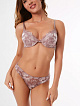 Комплект: бюстгальтер пуш-ап с гелевой чашкой и трусики-бразильяна. Выполнен из биколорного кружева.