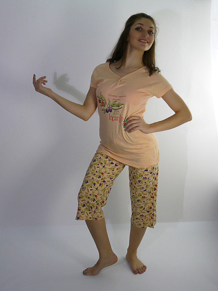 Женский комплект: футболка с коротким рукавом и бриджи.