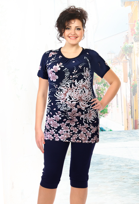 Состав изделия домашней одежды для женщины и муж.: Комплект ( бриджи + футболка )