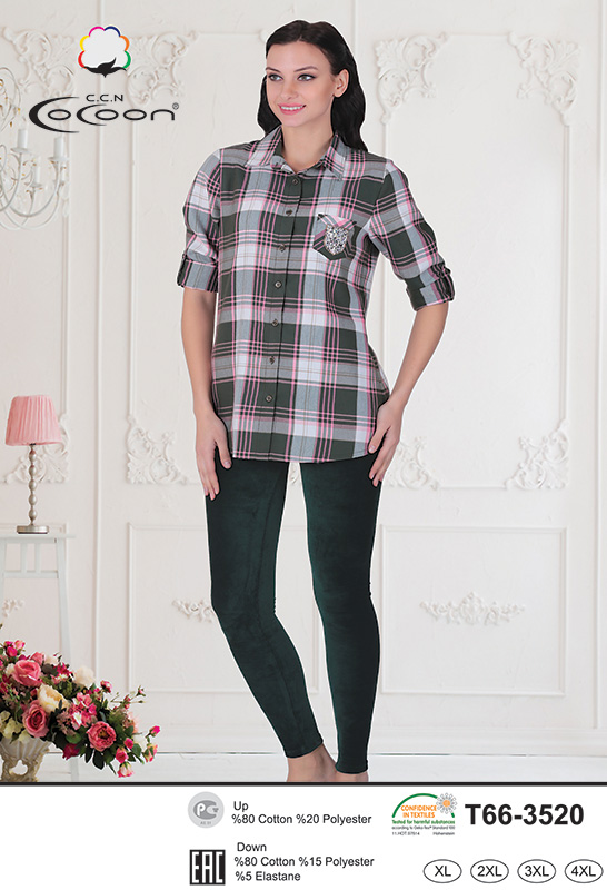 Бренд: Cocoon Артикул: 66T-3520 Состав: 80%хл.15%п/э.5%эл. Страна: Турция Размер: 4 XL Цвет: Т.Зеленый